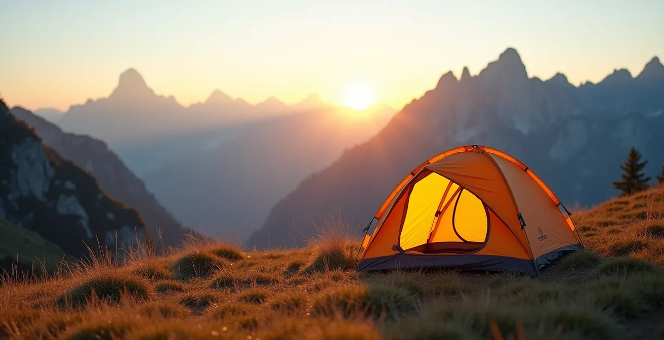 Le bivouac, cette expérience immersive d’une nuit en pleine nature, est souvent toléré dans les cœurs de parcs nationaux, mais sous des conditions très strictes. L’objectif n’est pas de vous priver du plaisir d’un réveil face aux sommets, mais de s’assurer que votre passage soit le plus éphémère et invisible possible. Le principe fondamental est celui du « Leave No Trace » (Ne laisser aucune trace). La réglementation la plus courante autorise l’installation d’une tente légère du coucher du soleil (vers 19h) au lever du soleil (vers 9h), et à plus d’une heure de marche d’un accès routier ou des limites du parc.