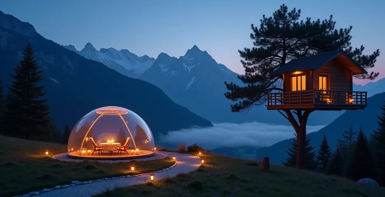 - Le « luxe » d’une nuit insolite réside dans les détails pratiques : l’intimité d’une bulle, la chaleur d’une yourte en hiver ou l’accès à une cabane perchée.