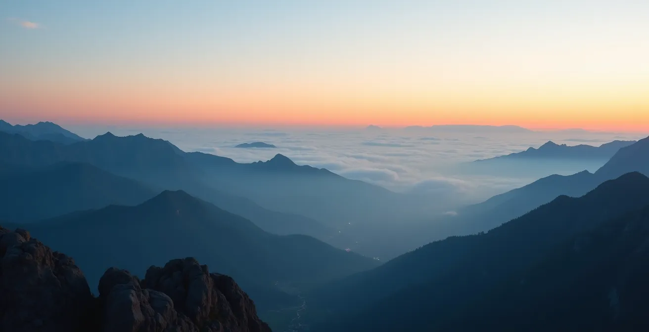 - Identifiez le scénario : Une « mer de nuages » (nuages en dessous, ciel bleu au-dessus) est le signal idéal. Un brouillard enveloppant le sommet est un très mauvais signe (visibilité nulle).