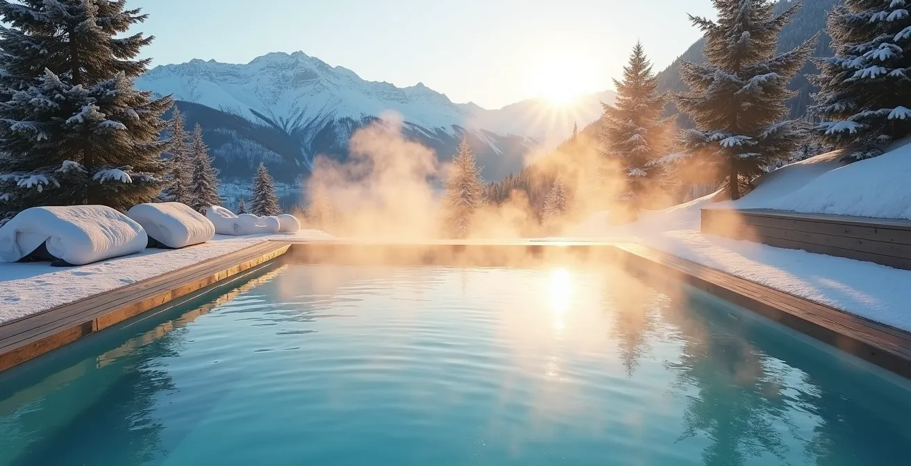 Imaginer sa famille barboter dans une eau fumante alors que la neige recouvre le paysage est une image d’Épinal des vacances à la montagne. Le critère « piscine » devient alors non négociable, et le dilemme s’installe : faut-il privilégier le cocon d’une piscine intérieure ou l’expérience spectaculaire d’un bassin extérieur chauffé ? Pour beaucoup, la question s’arrête là, au confort versus l’originalité. C’est une erreur qui peut transformer un rêve en une série de petites déconvenues.